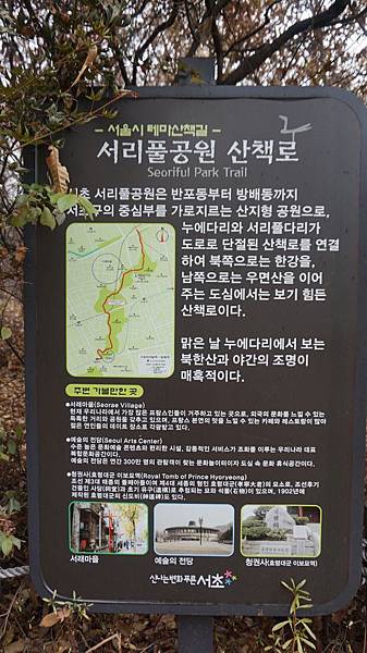 介紹霜草公園(서리풀공원)整條行山路線的指示牌。![]()