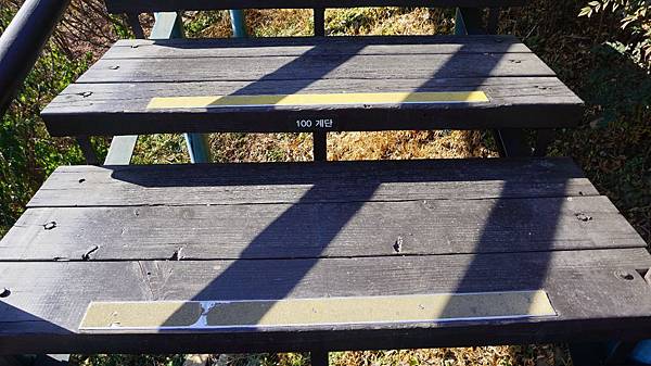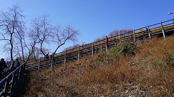 上坡後到達天空公園山腳下第一個毅力挑戰(笑臉)—— 攀上291級天空階梯。