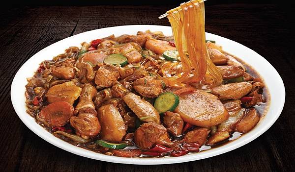 濃稠的醬汁鹹甜各半,均勻地滲入香嫩鮮美的雞肉與甜美飽滿的配菜內,特別是條條分明的冬粉們,都非常非常入味(我們也吃得非常非常滋味>3<;