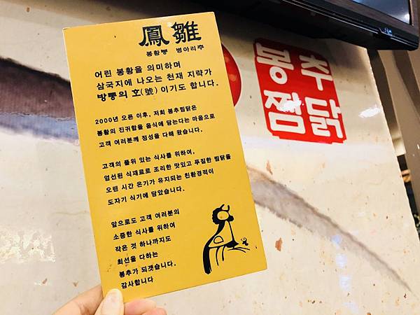 鳳雛以傳統手法烹煮的燉雞而廣受饕餮歡迎,至今在韓國國內已有162間分店,遍及首爾、大邱、京畿道、光州、濟州、大田、釜山等各地;(首間專門店設於大學路)