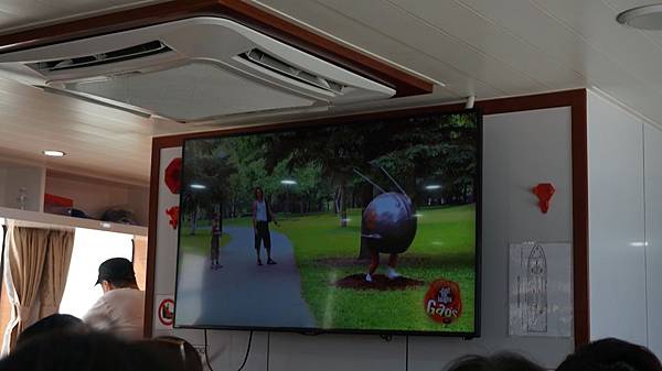 下層正在放映外國的「隱藏鏡頭」影片,引得大家哈哈大笑;然而,最引得婆婆哈哈大笑的是下層的充電座啊!!