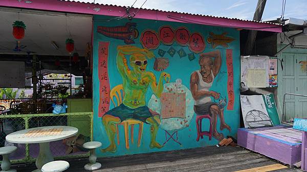 走著走著,就來到吉膽島上的「豪宅區」。(也是七彩繽紛的呢![]()