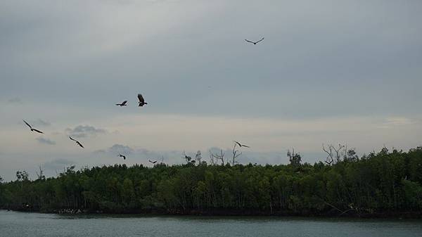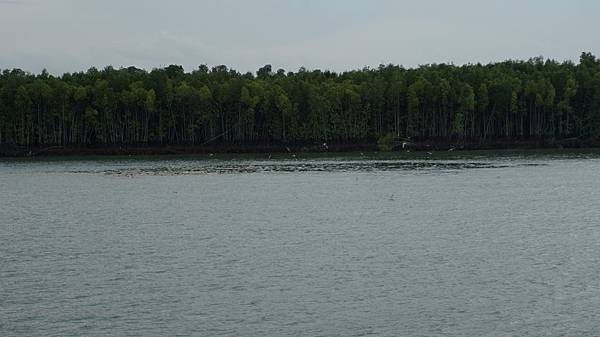 在這趟旅程開始之前,導遊介紹吉膽島時說到,島上大部份地區都被紅樹林包圍,植被覆蓋率高,因此抵擋了大部分海浪(也難怪能看到波平如鏡的河面);