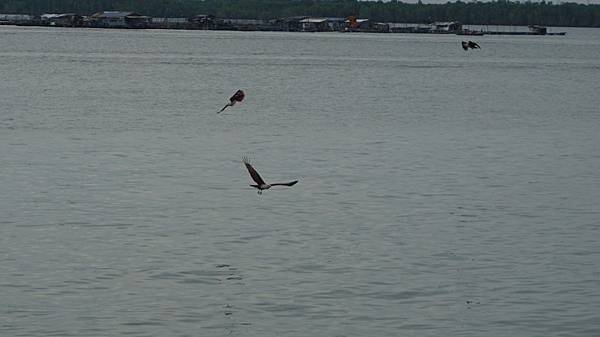 而老鷹,則是船長把船停航後,把生雞肉拋進海中,不久老鷹們便成群結隊地從紅樹林猛地飛出~~白鷺們也是一起搶食(船長夫人說老鷹和白鷺同時出現,這個畫面很難得![]()