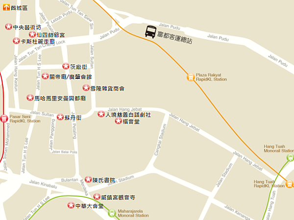 交通:搭乘Putra LRT地鐵至Pasar Seni站,步行約4分鐘