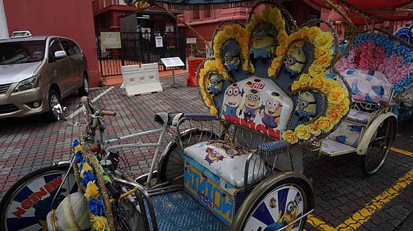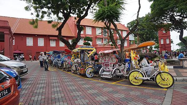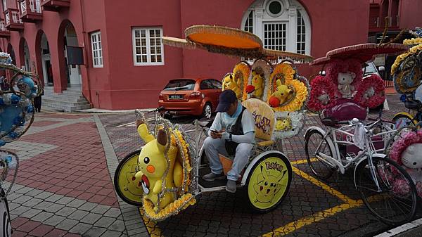 「荷蘭紅屋廣場」前停泊著一輛輛被可愛玩偶裝飾的人力車![]()
