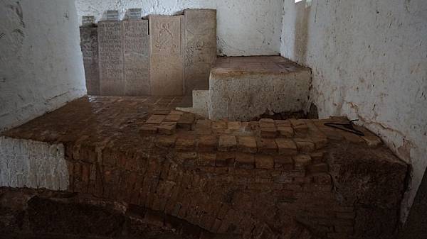 教堂兩旁分別倚佇著數塊石碑。