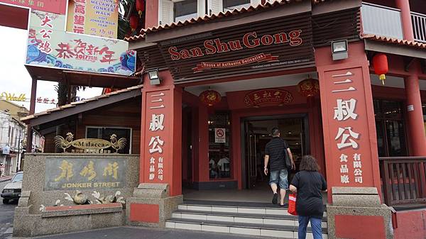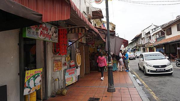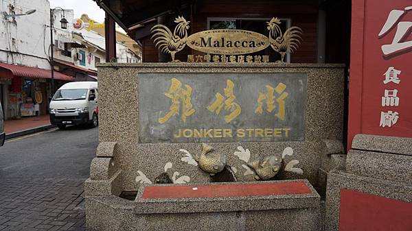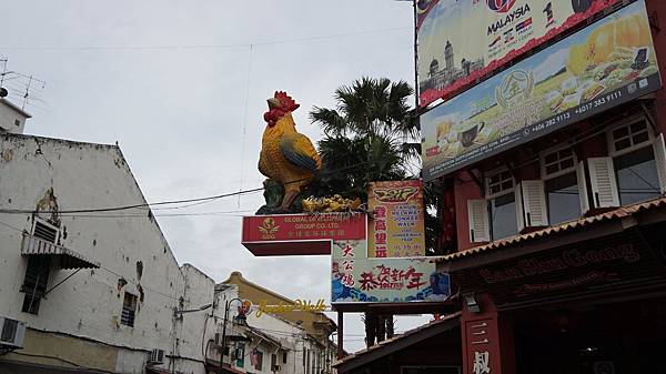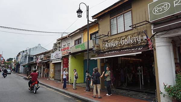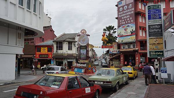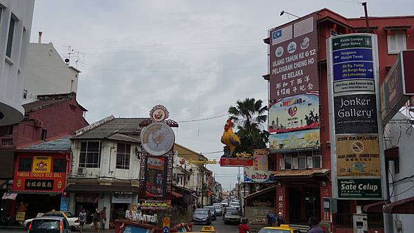 剛從馬六甲河岸(遊船終點)下船後,越過橫跨馬六甲河的小拱橋,轉過彎就來到了導遊極力推薦吃粒粒海南雞飯的「雞場街(Jonker Street)」。