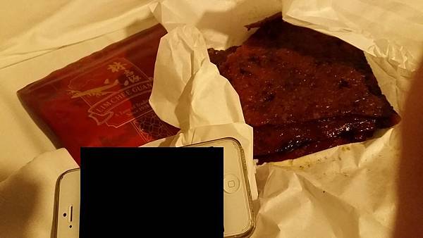 回到酒店後,像是拆禮物般,我倆迫不及待打開肉乾包裝(專程買來即場吃的XDD);