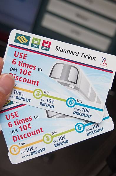 然而新加坡的單程票(?)真的十分神奇(初時我們並不知道,只好奇為何出閘不用回收車票)直至再次購買單程票,才真正明白用途 —— 原來這張單程票可以循環使用6次;除了第1次之外,第2至6次乘車也會有優惠: