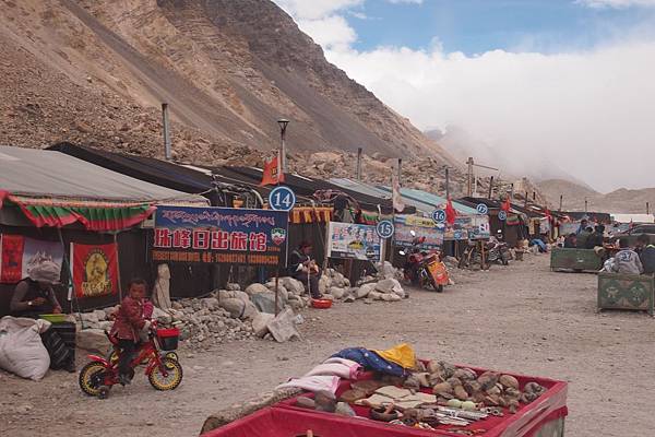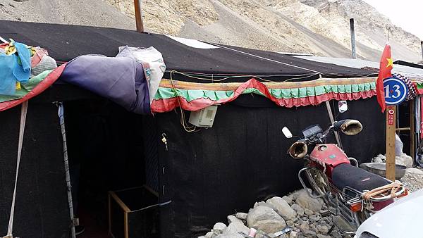 寫著清晰號碼的旅館一間又一間的緊接著,按順序整齊排列;旅館是簡樸的藏式風格小帳篷,由氂牛毛褐子縫製而成的帳篷大多呈灰黑色(有些呈淺色),帳檐掛著一片色彩斑斕的穗子,給簡單點綴。