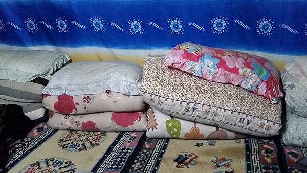 同伴們建議我轉到門旁(也許是背對火爐?風向?)最接近火爐的門旁,竟然爐煙的味道是最淡的……她們擔心我睡在門旁會冷倒,也通通把頸枕、頸巾、頸帶、頭巾、大衣全部都給我(很感動,真的