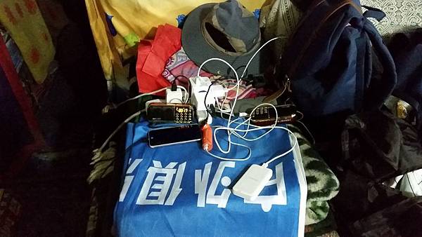 老人家一直以為珠峰沒有供電,沒想到居然有充電的位置;導遊說電源來自遠方的電纜。