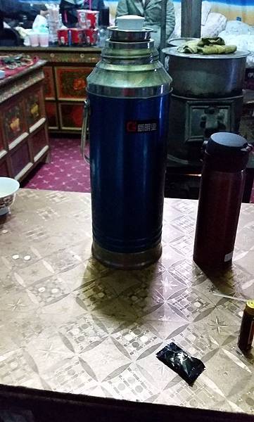 在不同的桌子上,有數壺不同的鐵壺,裡面除了盛著熱水之外,還有甜茶和酥酒茶。(非常非常的濃味!!)