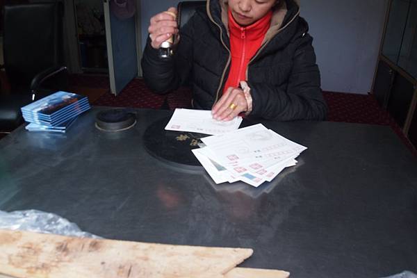 我們則把事先買好的明信片拿出來,給駐守在珠峰郵局的職員蓋章。