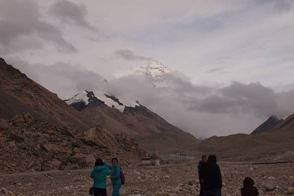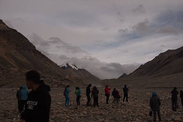 導遊突然揚聲,著我們出帳篷;原來,以為不會相見的珠峰,矯情地露出一隅。