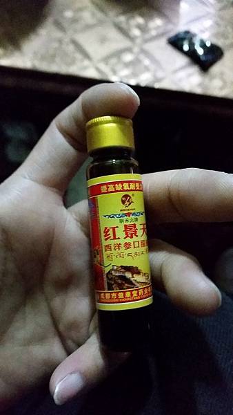 導遊從車上帶來了一杯透明的液體,那時候,我甚至不知道它的名稱 —— 那是我人生第一次喝的純葡萄糖;另外他也給我一枝噴霧式的氧氣瓶,說是不適的時候就吸吸吧~~(但我還是很抗拒它的「拯救」