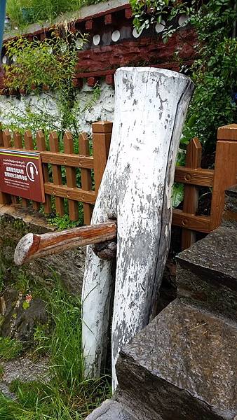 由於導遊講解時腳程慢的婆婆還未跟上,只聽到燒香二字;後來才知道,這個在藏區幾乎家家戶戶都備有的尖型石,是用來舉行藏族祭天地諸神儀式——「煨桑」的「煨桑爐」。