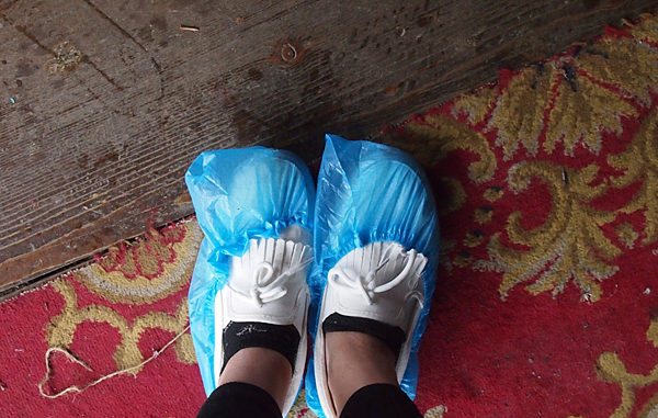 在下雨天,寺門前會提供鞋套讓遊客穿上,保持寺廟內乾爽。