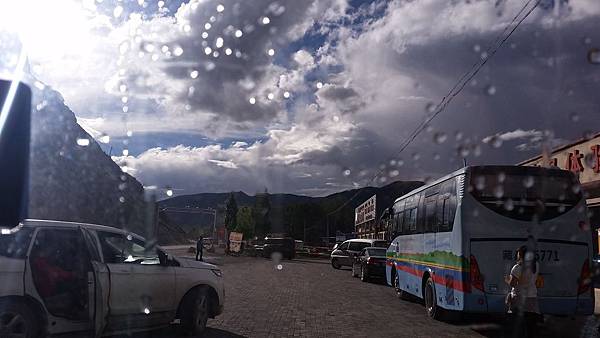 前去拉薩的路途比想像中遙遠,經過群山、草原、村落、以及需要行個方便的中途休息站等等……歷時不知道多久,約九時左右,我們終於到達拉薩!!!(站起來痛哭~~~~因為真的會坐到屁股痛 一直駕車的司機也辛苦了~~~