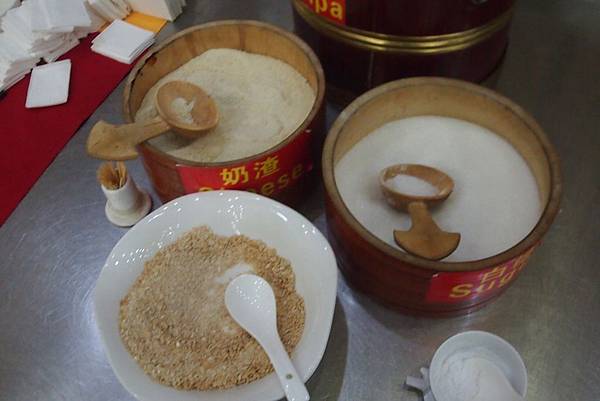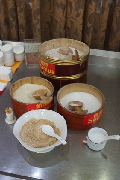 也第一次看見早餐有自製糌粑,讓老人家想起昨天的糌粑磨坊。