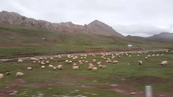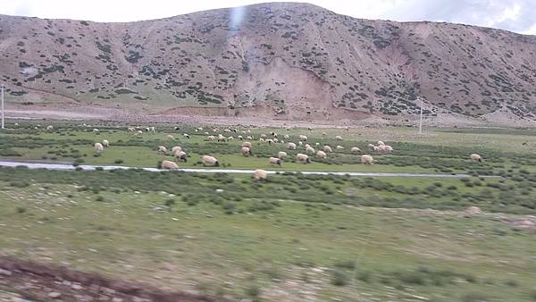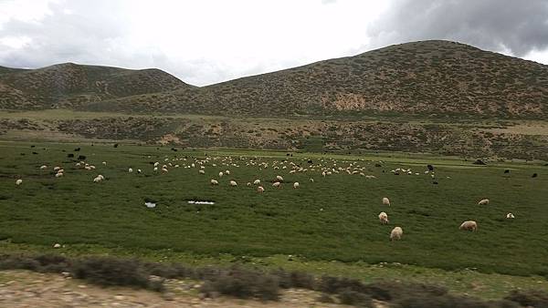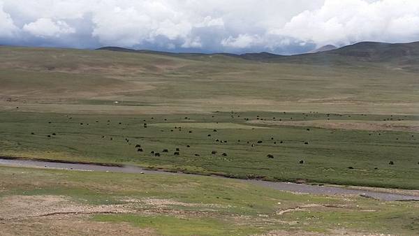 遠看像小蟲蟲、小白蟻的傢伙,實際上是一大群壯觀又可愛的牦牛與藏羊