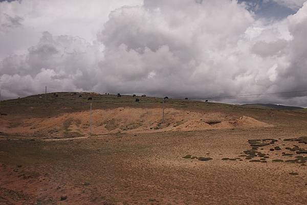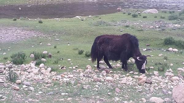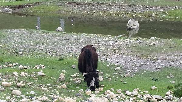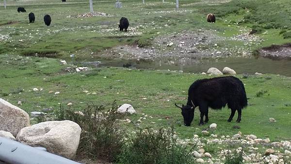 雖然一直想找機會近拍牦牛,但由於都是「行車中」,大部分照片都拍糊了;幸好,前方又被堵住的時候,剛好外面就有幾隻牦牛在吃草~~~~