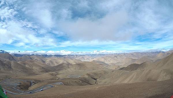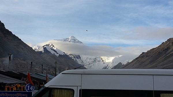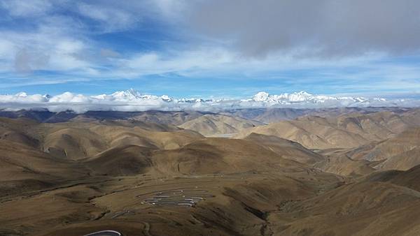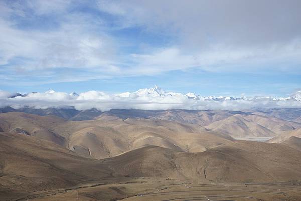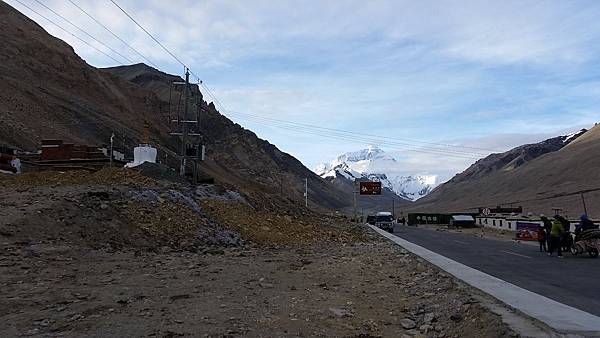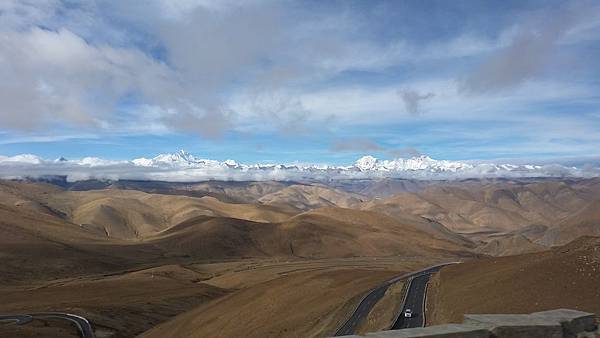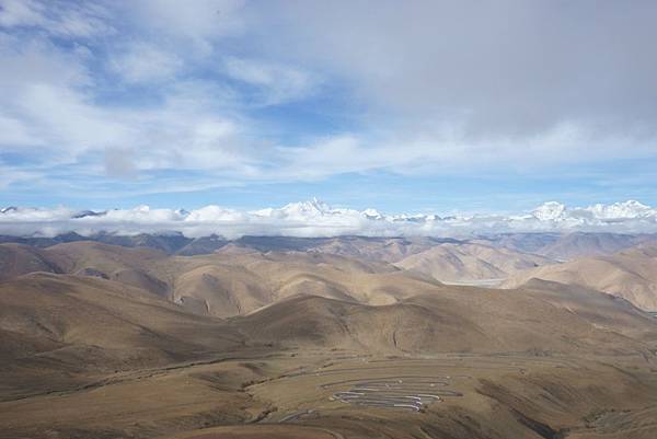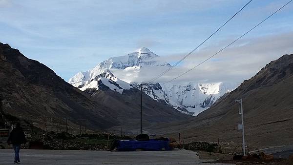 從絨布寺回望,是遠眺珠峰的好位置;沒想到,昨天被濃霧遮蔽的珠峰,今天整個露臉了呢 (導遊說我們很好運氣