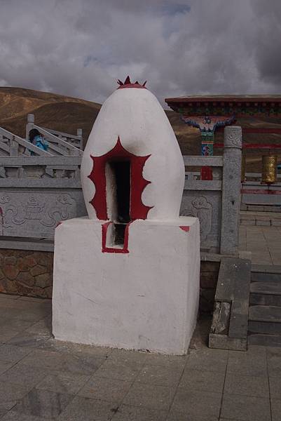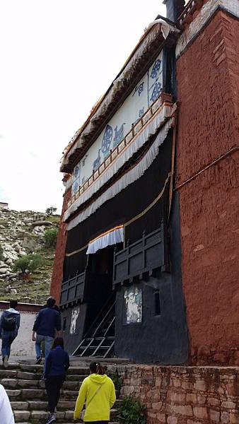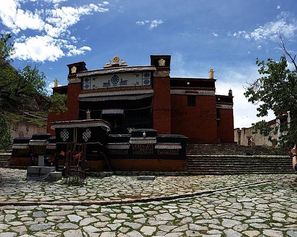 右側是阿康(庫房),用來放置修繕集會殿頂時用的工具。後面是放置璧畫的俄門拉康,如釋迦牟尼、菩薩、覺囊派高僧、時輪壇城等…