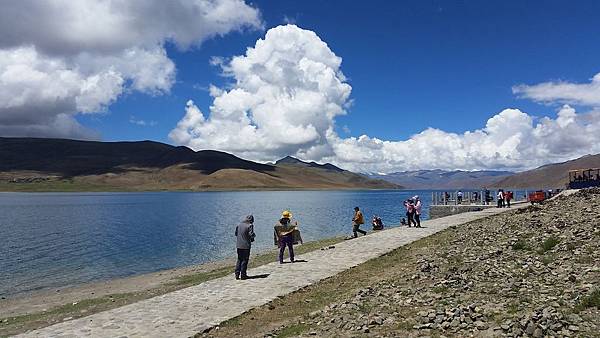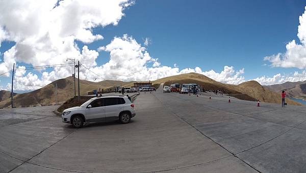 導遊說我們開始進入「羊卓雍措」的湖區,需要過安檢~~除了我們之外,旁邊還有很多停泊的汽車,趁著這個空檔,我們都下車去一趟洗手間。