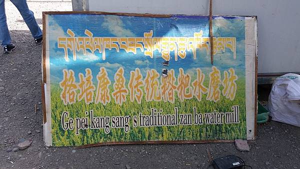 題外話途中導遊帶我們到行程中沒有的「糌粑水磨坊」~~~觀看由青稞粒變成粉狀,再變成糌粑的製作過程