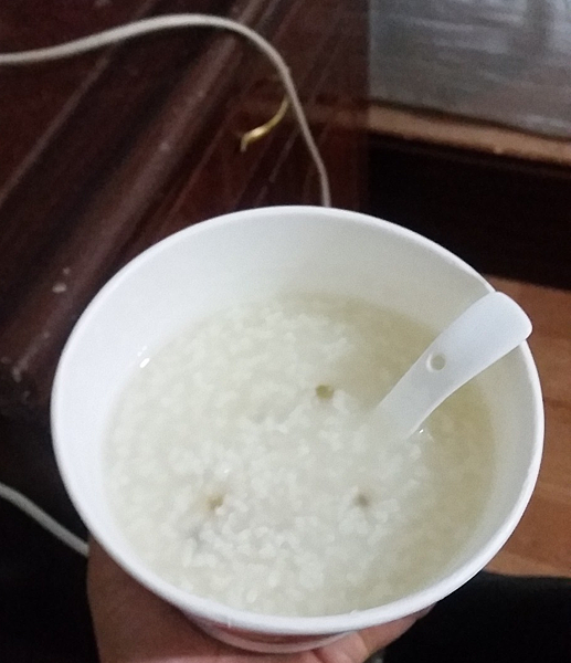 回去後先到大廳買外賣(早餐;綠豆粥味道淡淡的,沒有加鹽,充滿清香的綠豆味。