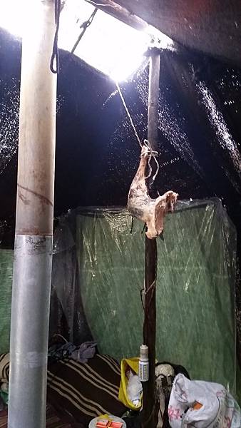 柱上掛著的風乾肉腿;大概在很重要很重要的日子,牧主人才會開吃吧?