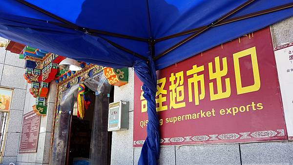 在正式回到拉薩之前,導遊先帶我們到一家很大型的超級市場買牦牛乾~~~超市內還有其他生活用品、西藏土產、武器、飾物等等;然而婆婆不吃牦牛乾,也看不合較貴的生活用品