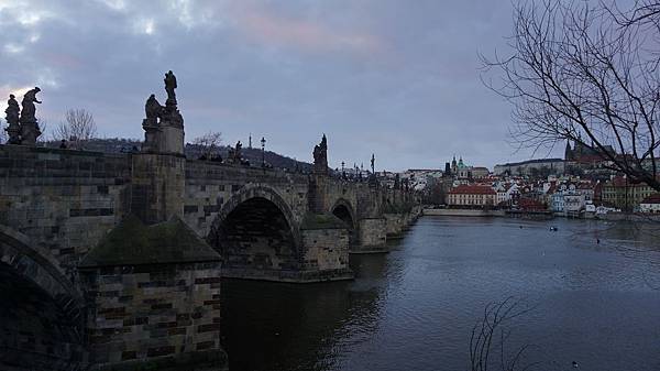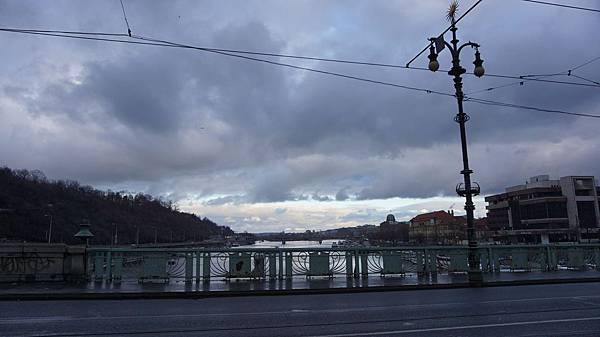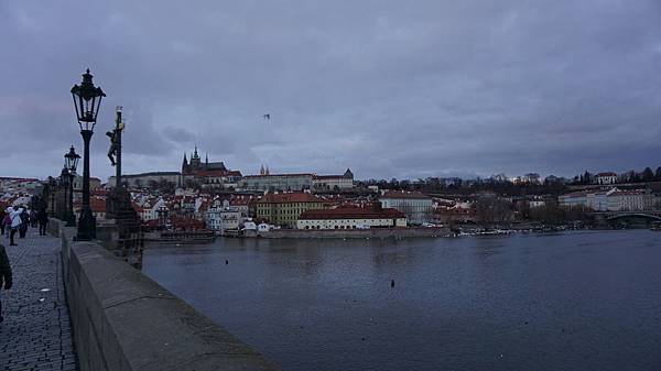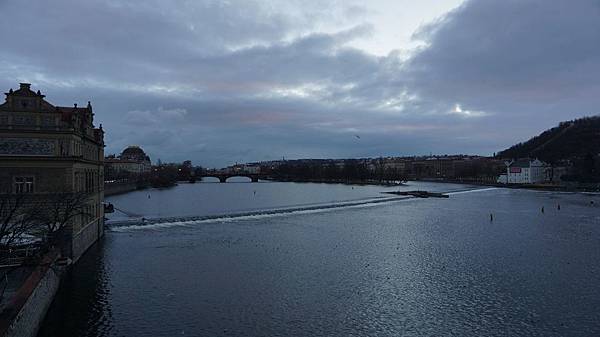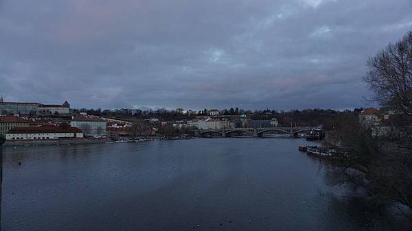 天色漸漸入黑,伏爾塔瓦河上的景色也悄悄鋪上一層名為夜幕的薄紗。