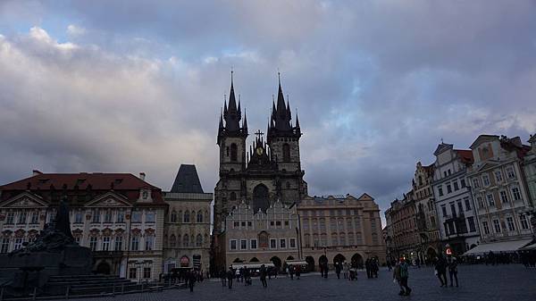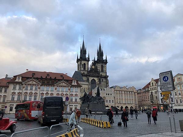 在正式開始自由活動之前,導遊先提醒我們遊逛老城區的注意事項,也簡單介紹眼前這座在舊城廣場上最矚目的「泰恩教堂」,和即將遊覽的「布拉格天文鐘」、和「查理大橋」。