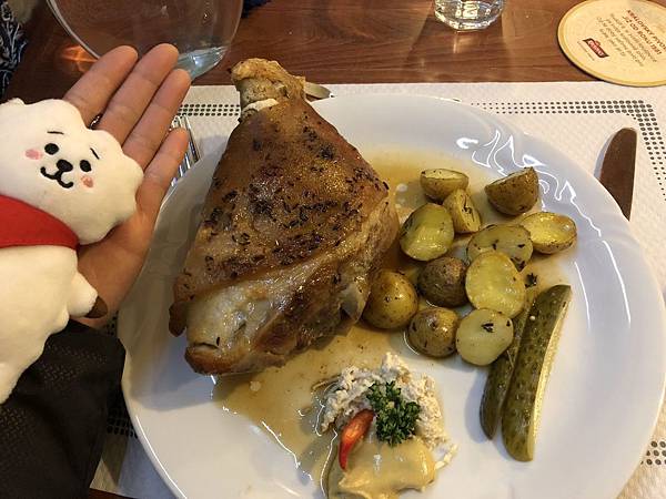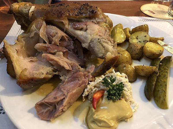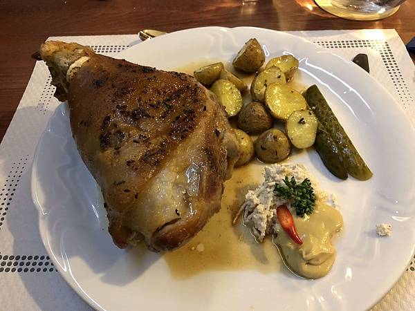晚餐是比手掌更大的波希米亞式豬手,是頗重點的晚餐之一,然而婆婆對豬手也真的是…很陌生?(因為老人家從來沒吃過豬手XDDD 也一直沒有想試的慾望哈哈