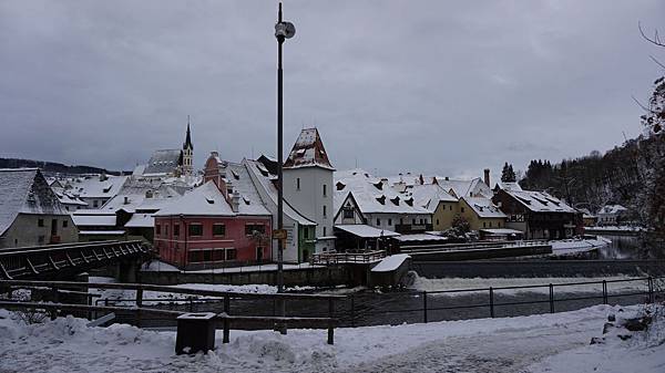 從橋上,可遠眺「捷克古姆洛夫城堡(Schloss Český Krumlov)」。