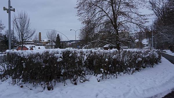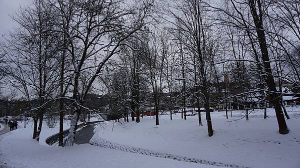 下車後,我們沿著雪路,漸漸走進鎮內。