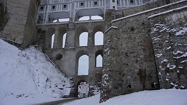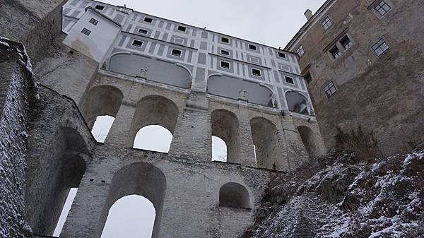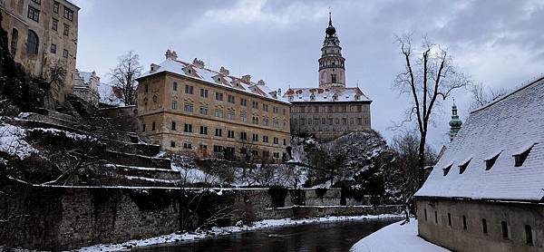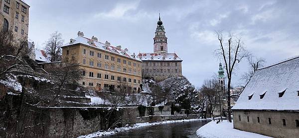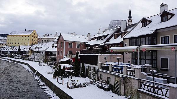 從橋上,可遠眺「捷克古姆洛夫城堡(Schloss Český Krumlov)」。
