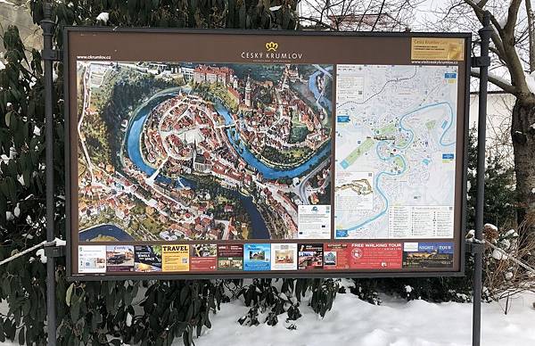 「伏爾塔瓦河」將小鎮分成了兩個區域:東北邊山丘是以古堡為主的「城堡區」;西南邊為被河水包圍,則是以市政廣場為中心的「舊城區」。