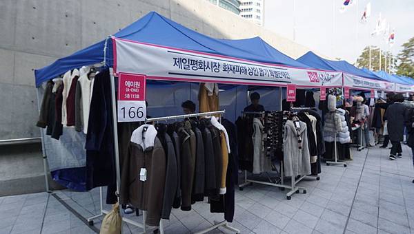 數十個攤檔集中在設計廣場內,主要售賣不同種類的衣服:長袖套裝、睡衣、大衣、棉褸、棉褲、羽絨,應有盡有,男女裝均齊全;
