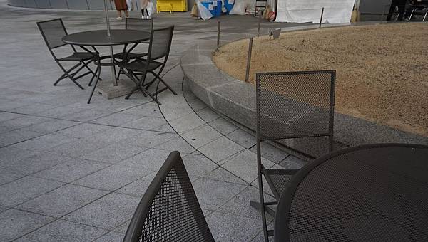 拍照地點是鄰近花槽的倒數第二張桌椅。