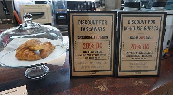 住客會有折扣(20% OFF),不過由於婆婆太後知後覺,退房後才光顧咖啡廳,因此以正價付款了;(外帶都有折扣