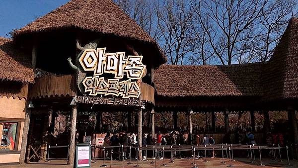經過玫瑰城及玫瑰花園後,一直沿著Amazon Express的指示路牌走就對了!或是向著園內最大最刺激的機動遊戲「木質過山車」方向走都可以