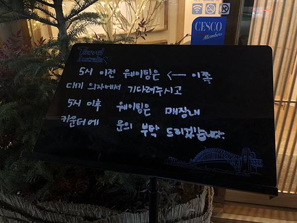 婆倆到達時門外並無人等候座位,店前放置了一塊關於等待餐桌的站立位置的指示立牌;