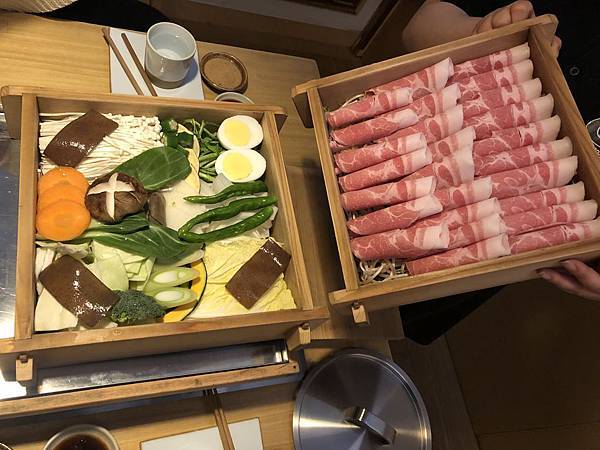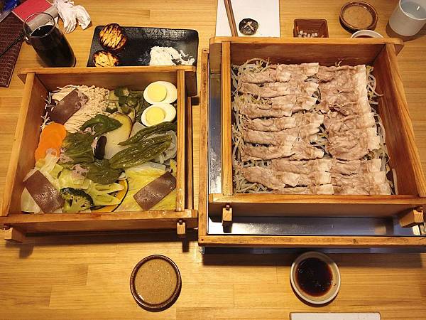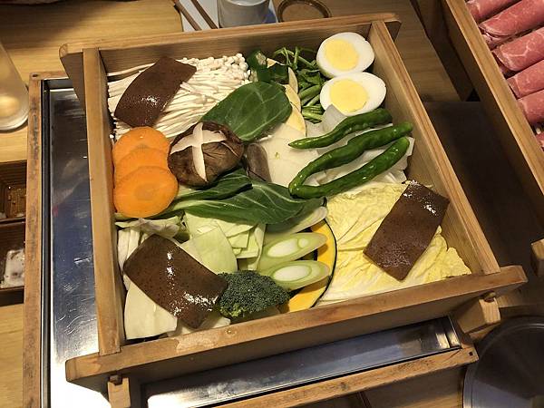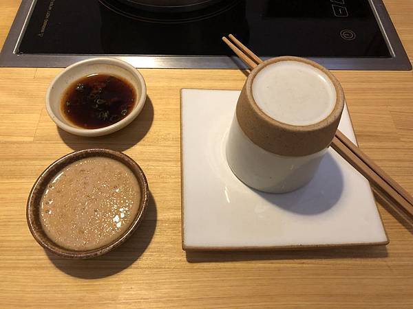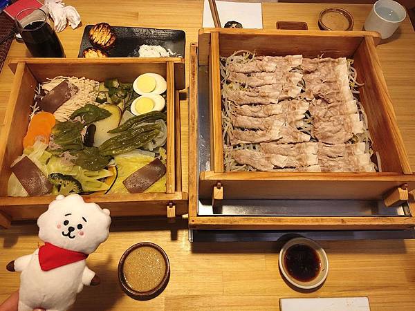 和豬肉一樣,蔬菜盤都是沒有味道的;職員建議,蔬菜類可沾芝麻醬,肉類可沾醬油調味。