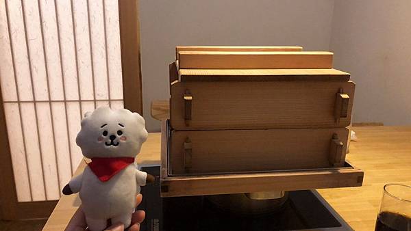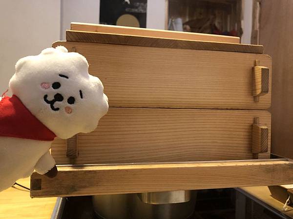 等了約一會兒,職員便捧著厚厚的兩層木架進來,先讓我們拍照,再搬到盛著沸水的蒸鍋上。